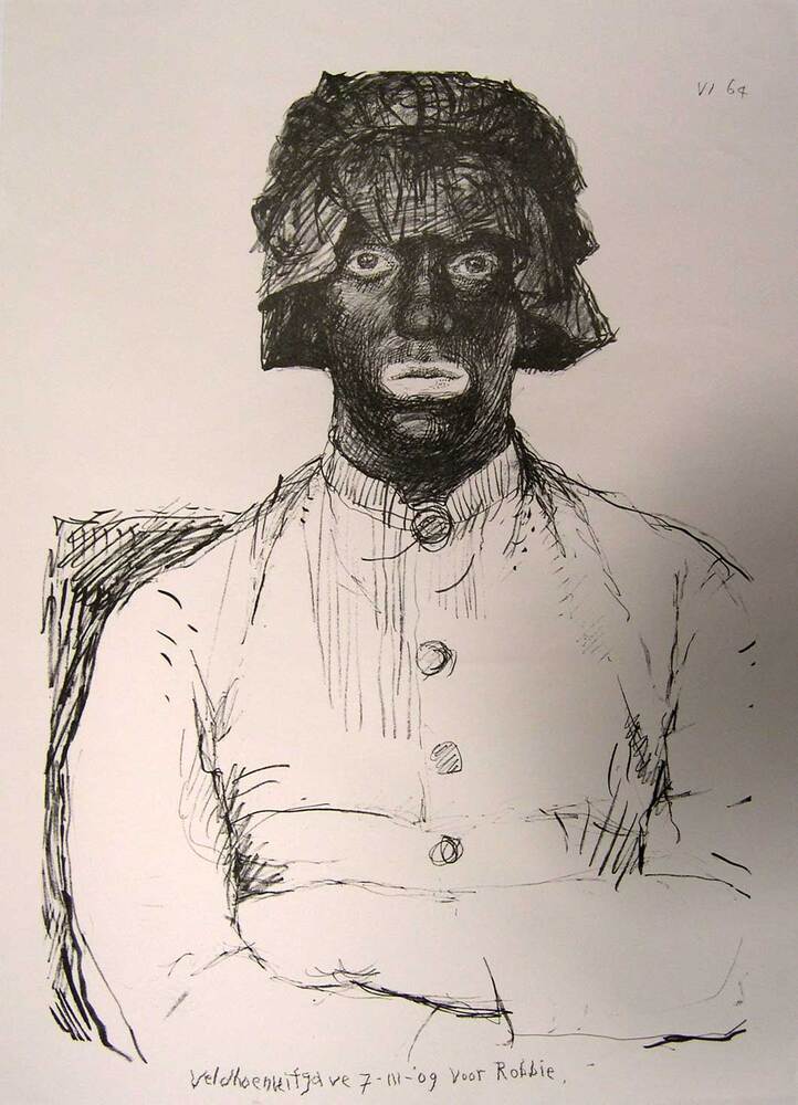 Robert Jasper Grootveld stierf arm in 2009. Jan de Jong van drukkerij/uitgeverij [http://www.uitgeverijdebuitenkant.nl/nieuwe_boeken/ De Buitenkant] maakte in herdruk gratis een grote oplage van dit portret. Het werd verkocht op het Spui om Grootvelds uitvaart mede te kunnen bekostigen. ( Annemarie de Wildt)