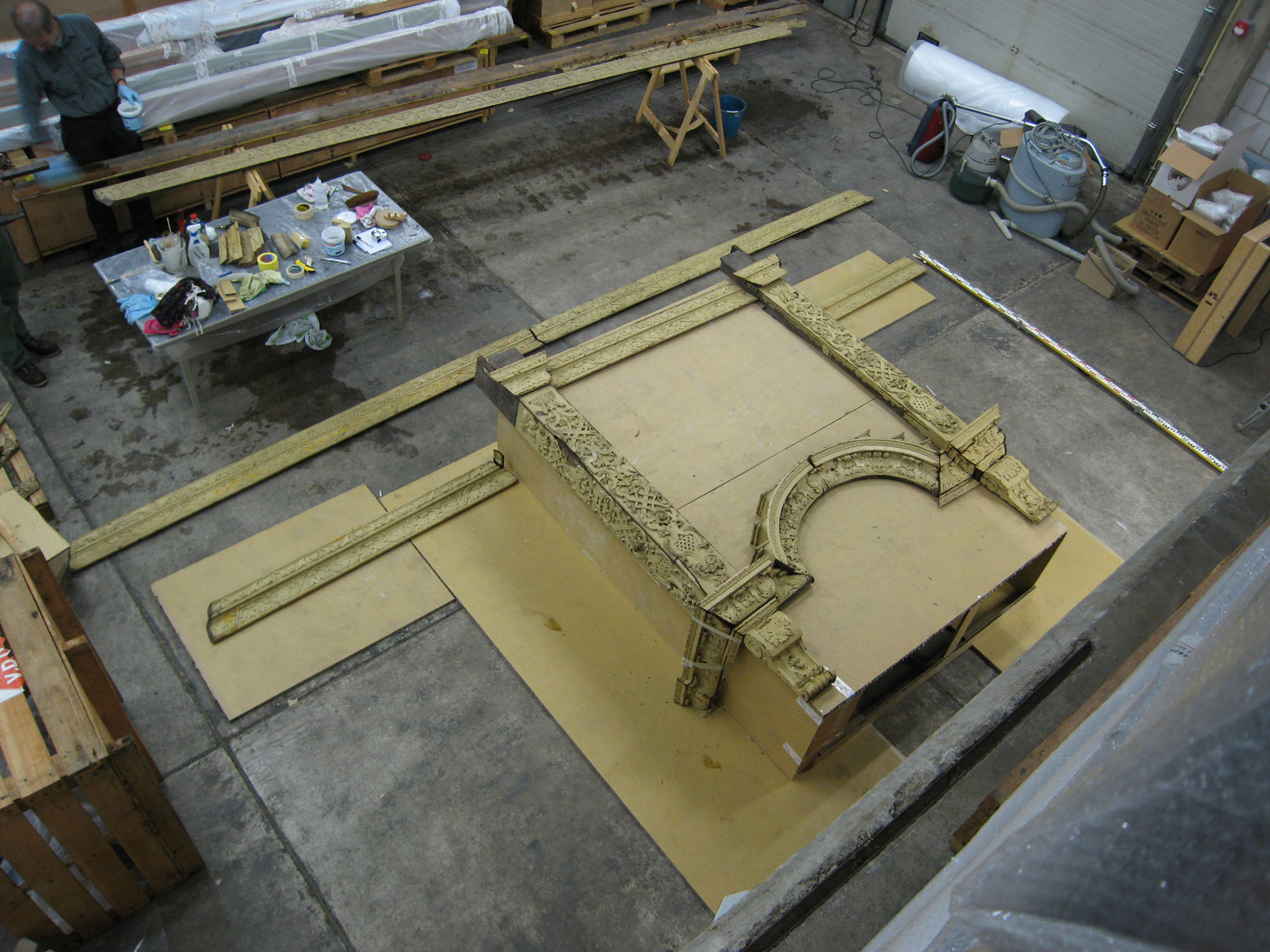 Houten schoorsteenboezem met bijbehorende plafondlijsten. Zie afzonderlijke subnummers.- Trefwoorden