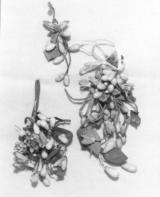 Zeven takjes oranjebloesem verdeeld in 3 'bosjes'- Trefwoorden