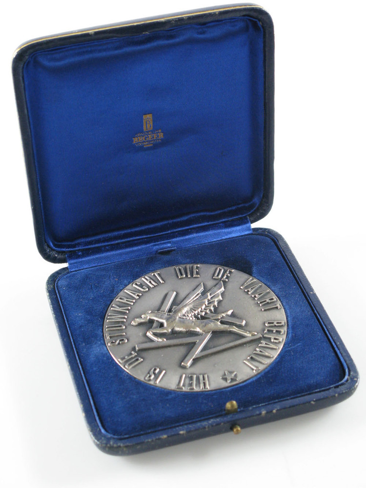 - Medaille van verdienste van de N.V. Luchthaven Schiphol, uitgereikt aan Ir. A. van Walraven, bij diens afscheid als directeur gem. dienst Publieke Werken, in doosje, 1962 - 1969