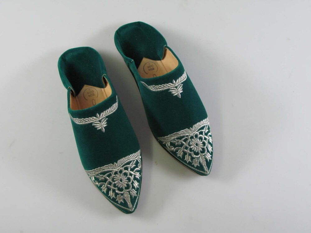 In Amsterdam zijn een aantal winkels die Marokkaanse kleding verkopen en verhuren. Daar worden ook muiltjes en hoofddoeken verkocht. Goedkope muiltjes, in het Marokkaans blagi, zoals deze groene muiltjes, zijn machinaal geborduurd. De duurdere zijn met de hand geborduurd. De muiltjes worden geïmporteerd uit Marokko. Ze worden thuis gedragen en bij feestelijke gelegenheden zoals bruiloften.