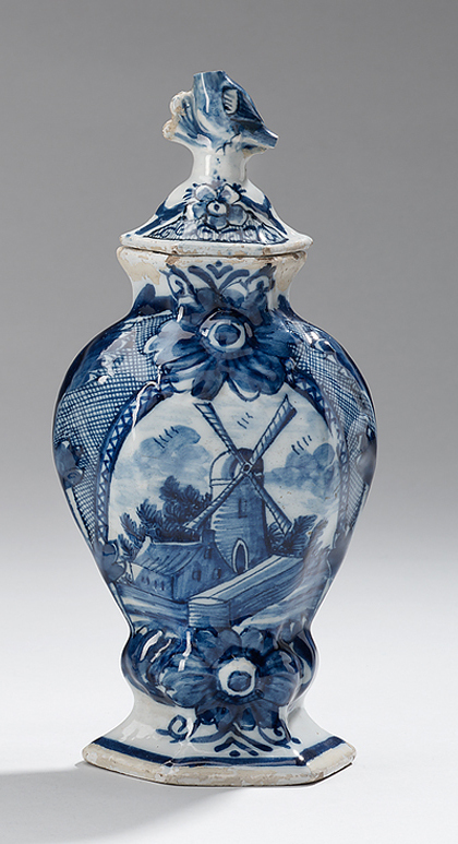 molen omlijst door bloemen. Duif als dekselknop- Trefwoorden