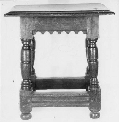 Bankje, kerkbankje uit de St. Catharina kerk te Brielle, 1640 - 1660 hout (eiken) hoogte: 51 cm; breedte: 49 cm; diepte: 34 cm; schenking 1920-05-21 inv.nr. KA 2946 in depot