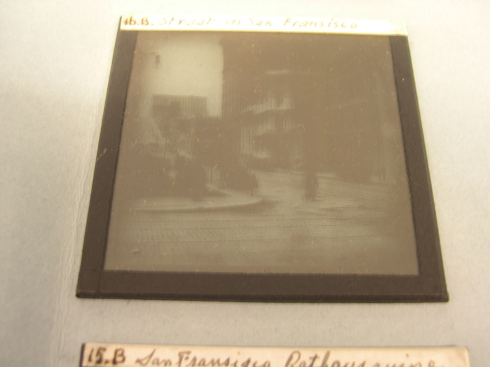 Toverlantaarnplaatje uit de serie 'Reis door Noord-Amerika'. No 16 Straat in San Fransisco- Trefwoorden