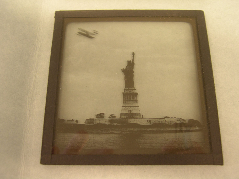 Toverlantaarnplaatje uit de serie 'Reis door Noord-Amerika'. New York Vrijheidsbeeld- Trefwoorden