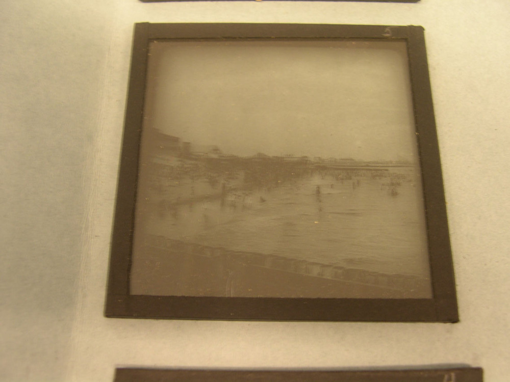 Toverlantaarnplaatje uit de serie 'Reis door Noord-Amerika'. No 5 New York Strand New Brighton- Trefwoorden