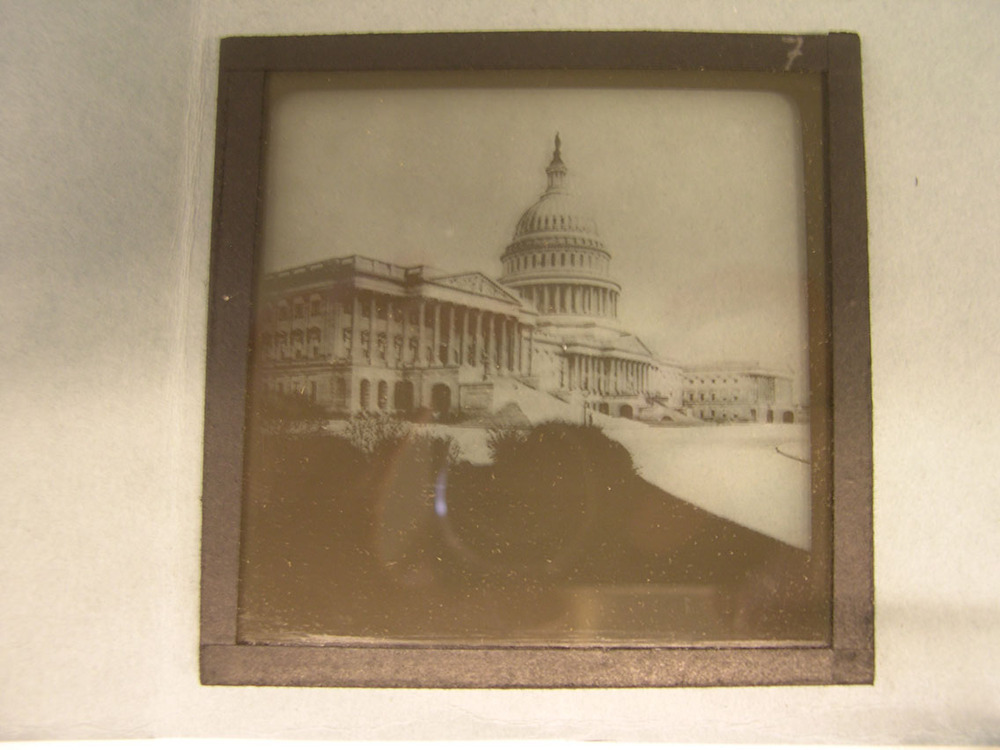 Toverlantaarnplaatje uit de serie 'Reis door Noord-Amerika'. No 7 Washington, Capitool- Trefwoorden