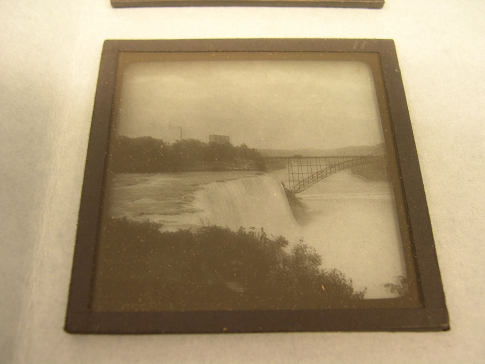 Toverlantaarnplaatje uit de serie 'Reis door Noord-Amerika'. No 11 Niagara watervallen- Trefwoorden