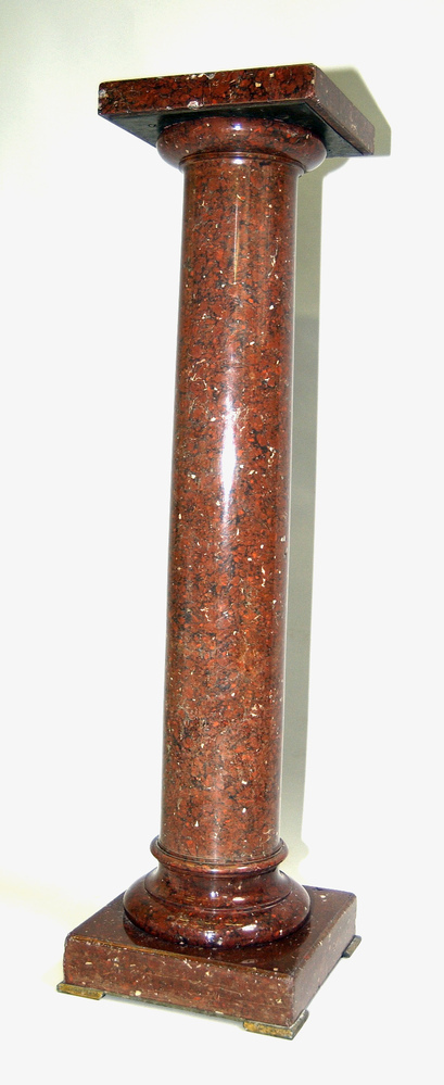 Sokkel vervaardigd van grotendeels rood gekleurde scagliola met bijmenging van zwart en grijs, met kleine stukjes witmarmer.- Trefwoorden