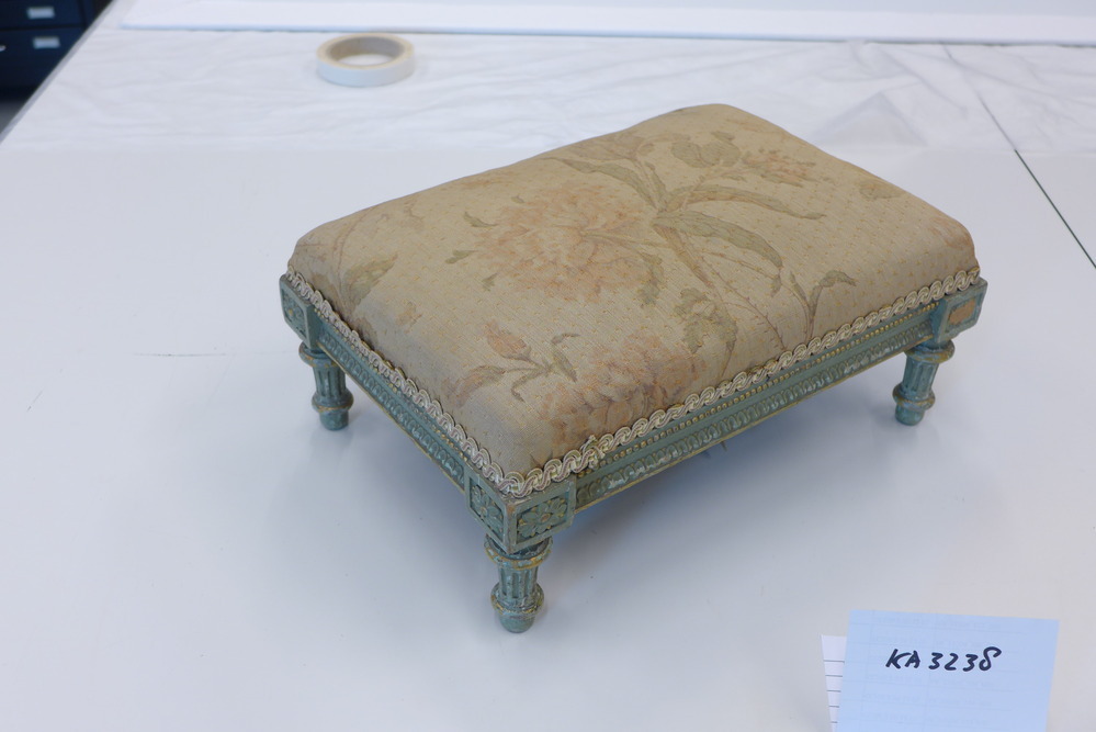 - Voetbankje met fragment bekledingsstof, 1850 - 1874