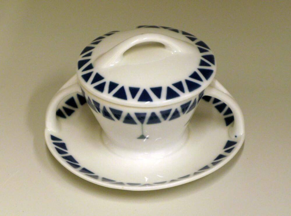Dit serviesonderdeel komt uit het bezit van de Amsterdamse architect Abraham Salm (1857-1915). Samen met zijn vader Gerlof Bartholomeus Salm (1831-1897) heeft Abraham een grote bijdrage geleverd aan de stedenbouwkundige veranderingen in Amsterdam in de tweede helft van de negentiende eeuw. Waar G.B. Salms naam onlosmakelijk verbonden is met de bouw van Artis in de Plantage, staat zoon Abraham vooral bekend om zijn herenhuizen, stadsvilla’s, (sigaren)fabrieken en paardentramremises, aanvankelijk in classicistische, later in meer historiserende eclectische stijl. Daarnaast ontwierp hij ook interieuronderdelen. Dit 28-delige servies is afkomstig uit het door A. Salm ontworpen huis aan de Weesperzijde 26, waar hij zelf woonde en werkte. Salm heeft het servies aan het begin van de 20ste eeuw gekocht op de Wereldtentoonstelling in Duitsland. ( Sarah Remmerts de Vries)