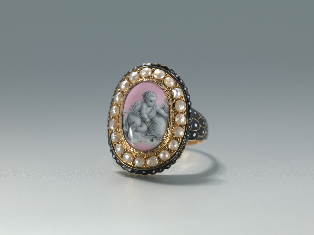 - Ovale ring met een emaildecor van een amor, 1840 - 1860