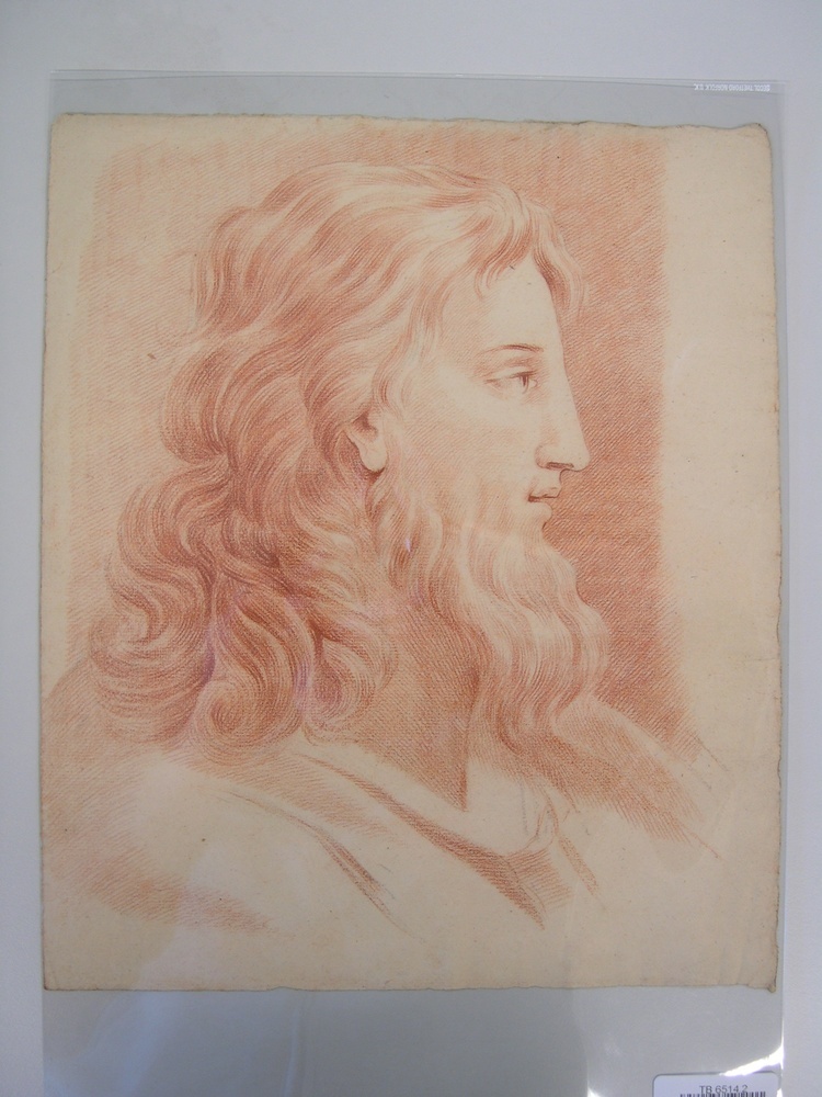 - Portrettekening van een man met lang haar en een baard, 1750 - 1850