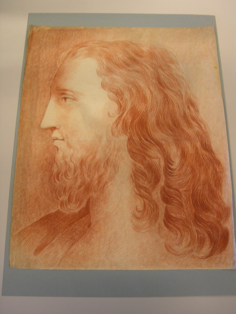 - Portrettekening van een man met lang haar en een baard, 1750 - 1850
