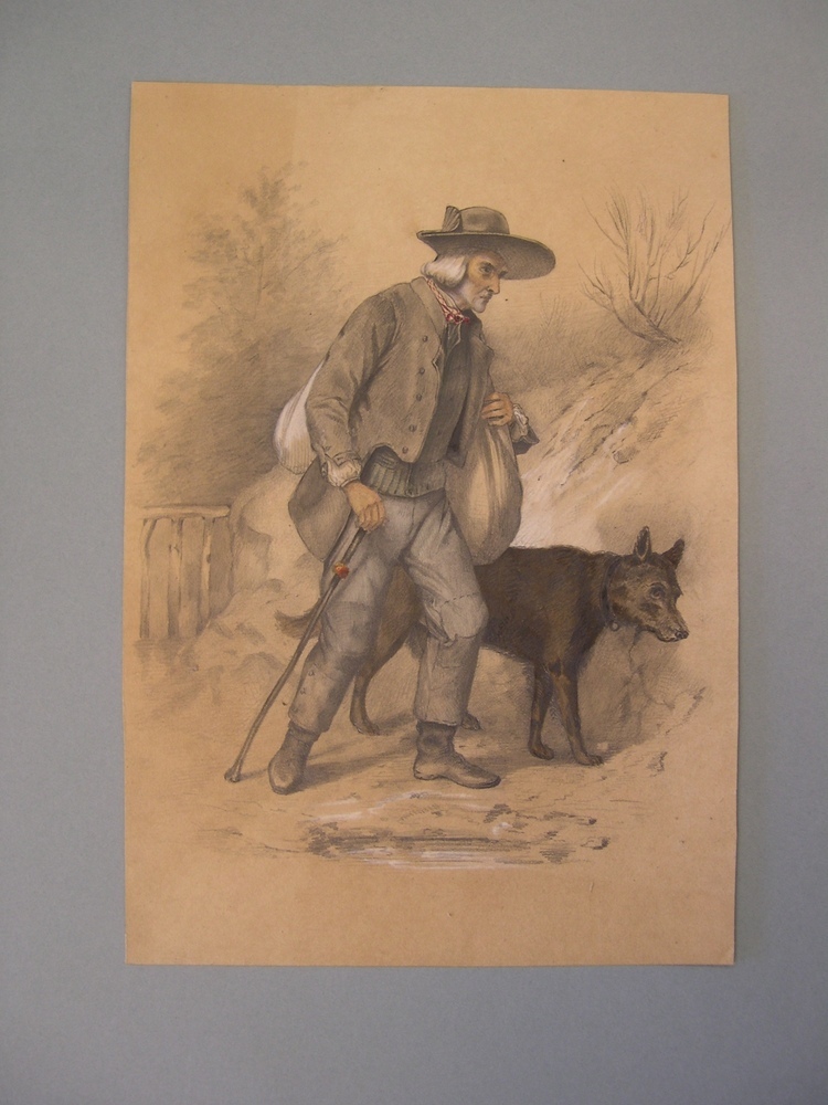 - Tekening van een wandelende man met hond, 1750 - 1850