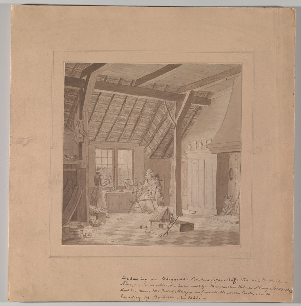 opschrift voorzijde tekening: Teekening van Margaretha Backer (1760-1827) Wed. van Mr Matrinus Alenga voor haar nichtje Margaretha Helena Alenga (1783-1847), boerderij op Boekestein in 1821