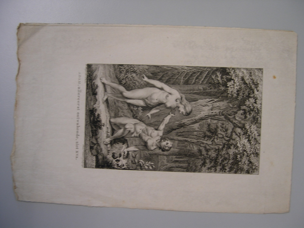 - opschrift voorzijde: Adam, allereerst ontwakende, zie Eva Buys - 1790