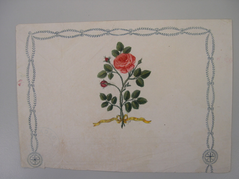 - opschrift lint bij roos: Rose Simbolle de la Baute 178