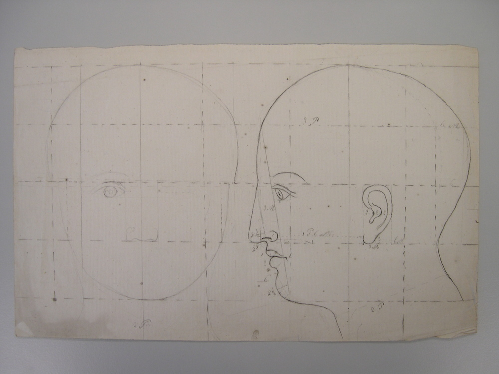 - Schets vaan een hoofd met maten, 1750 - 1850