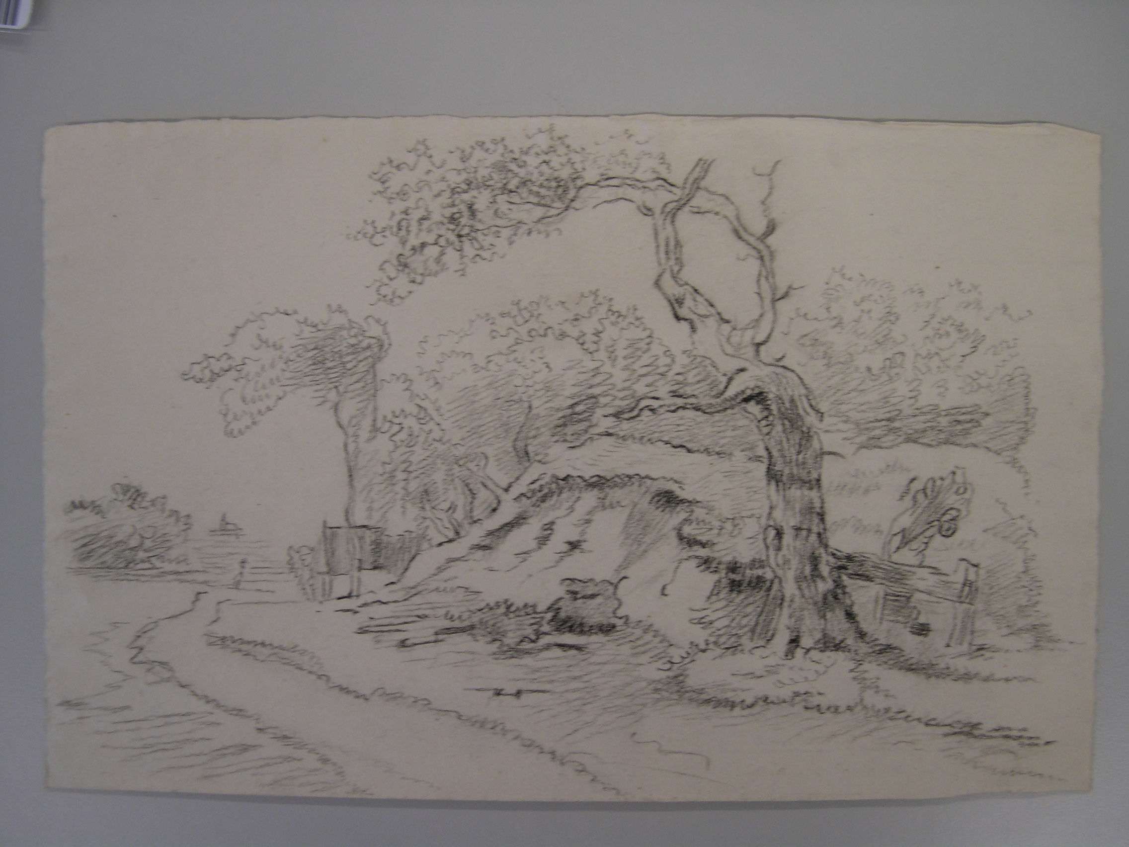 - Tekening van een pad langs een bosgebied, 1750 - 1850
