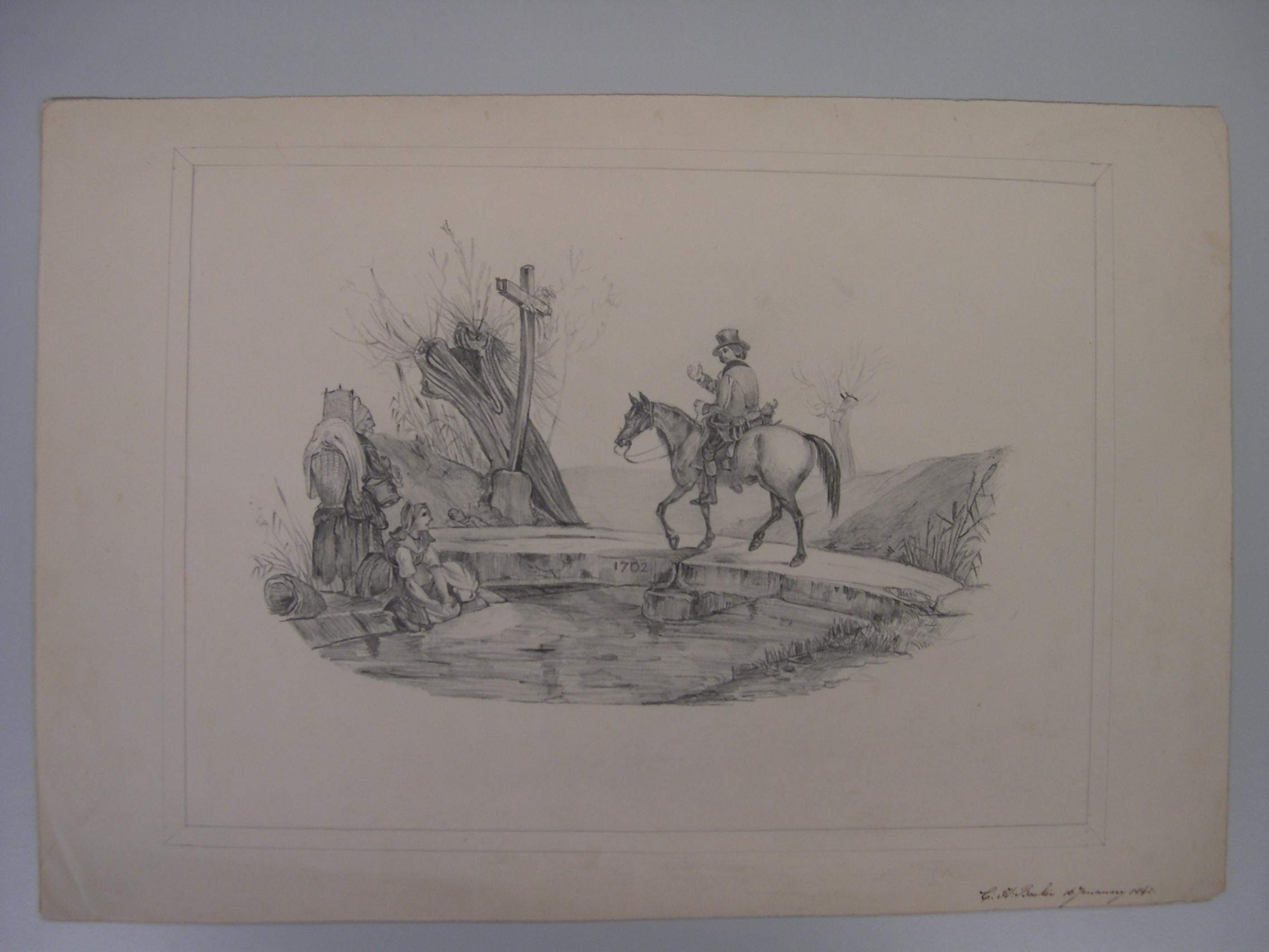 - Twee wassende vrouwen en man op paard, 1812 - 1850