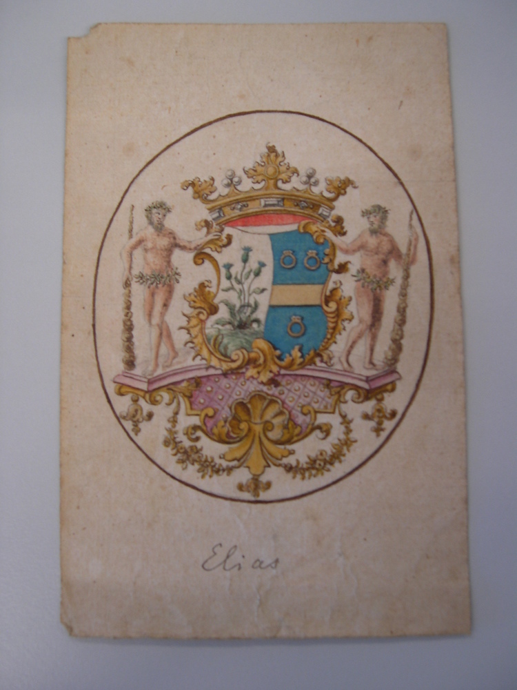 - Gekleurd wapen met drie ringen en een plant: Elias, 1750 - 1799