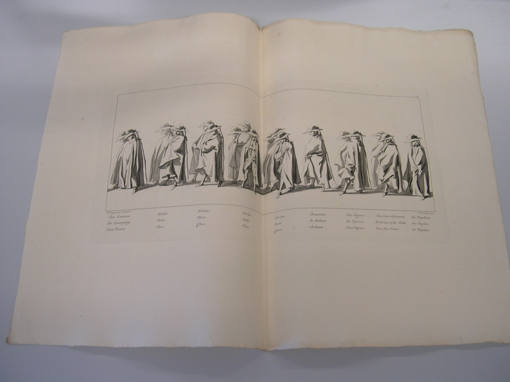 - opschrift onder gravure: Twee Commizen, Klerken, Boumeester, Twee Piqueurs, twee Onderstalmeesters, Kapelaan