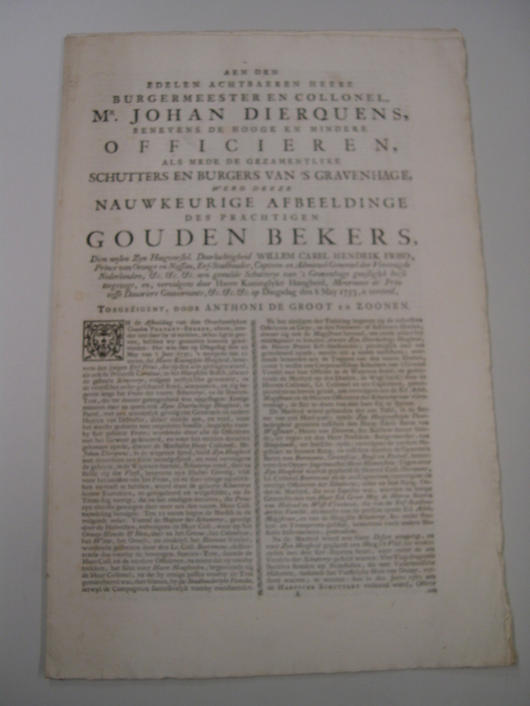 - Document met afbeeldingen van Gouden Bekers, 1750 - 1799