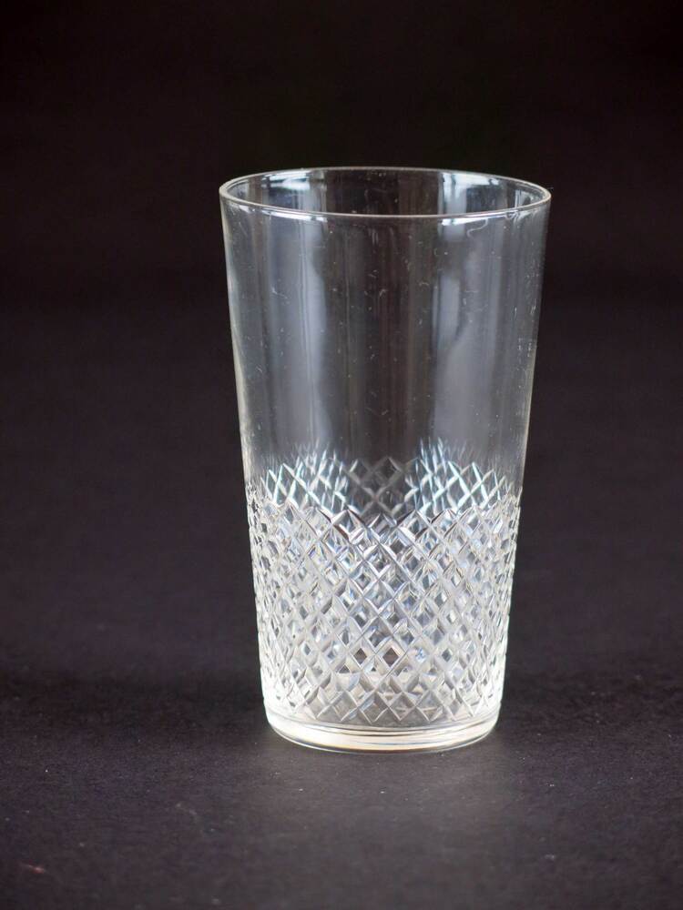Dit drinkglas komt uit het bezit van de Amsterdamse architect Abraham Salm (1857-1915). Samen met zijn vader Gerlof Bartholomeus Salm (1831-1897) heeft Abraham een grote bijdrage geleverd aan de stedenbouwkundige veranderingen in Amsterdam in de tweede helft van de negentiende eeuw. Waar G.B. Salms naam onlosmakelijk verbonden is met de bouw van Artis in de Plantage, staat zoon Abraham vooral bekend om zijn herenhuizen, stadsvilla’s, (sigaren)fabrieken en paardentramremises, aanvankelijk in classicistische, later in meer historiserende eclectische stijl. Daarnaast ontwierp hij ook interieuronderdelen. Deze 24-delige kristallen drinkset is afkomstig uit het door A. Salm ontworpen huis aan de Weesperzijde 26, waar hij zelf woonde en werkte. Alle onderdelen van de set dragen het monogram ‘S’. ( Sarah Remmerts de Vries)