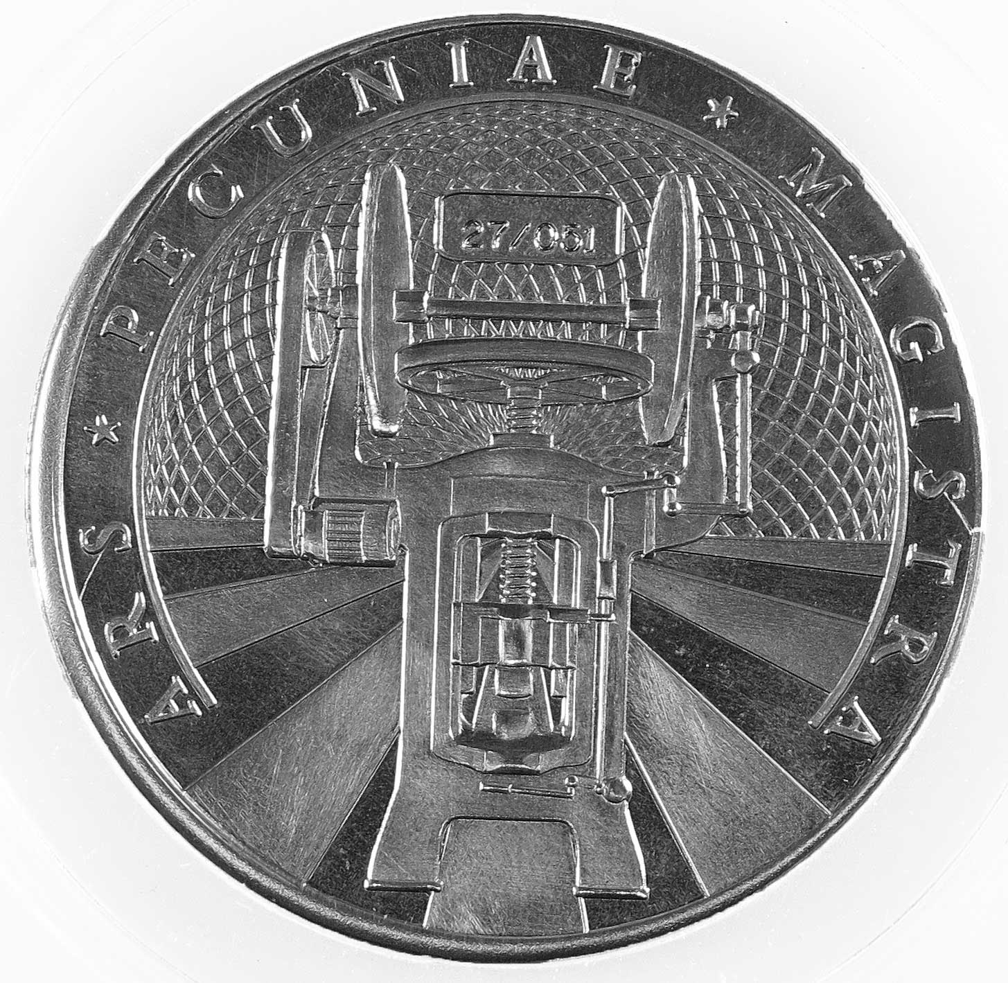 De Kunst Reserve Bank is een monetair experiment, opgezet voor en door kunstenaars. De bank introduceerde een nieuwe reservemunt, waarvan de waarde gebaseerd is op de waarde van kunst. Het project kan gezien worden als manifestatie van de kunstwereld tegen het bestaande financiële systeem en de tendens om kunst hierin als minderwaardig te zien. Deze vier munten zijn ontworpen door kunstenaar Ted Noten. Alle voorzijdes zijn verschillend, de muntzijdes tonen telkens een afbeelding van een Dutrannoit frictiepers, waarmee de munten van de bank geslagen worden. Om de afbeelding heen is het motto van de bank te lezen: ARS PECUNIAE MAGISTRA ('Kunst is de (leer)meester van het geld'). ( Sarah Remmerts de Vries)