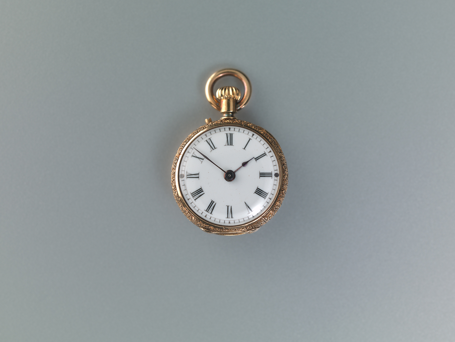 - Remontoir miniatuurhorloge versierd met diamanten in een de vorm van een margriet, 1865 - 1885