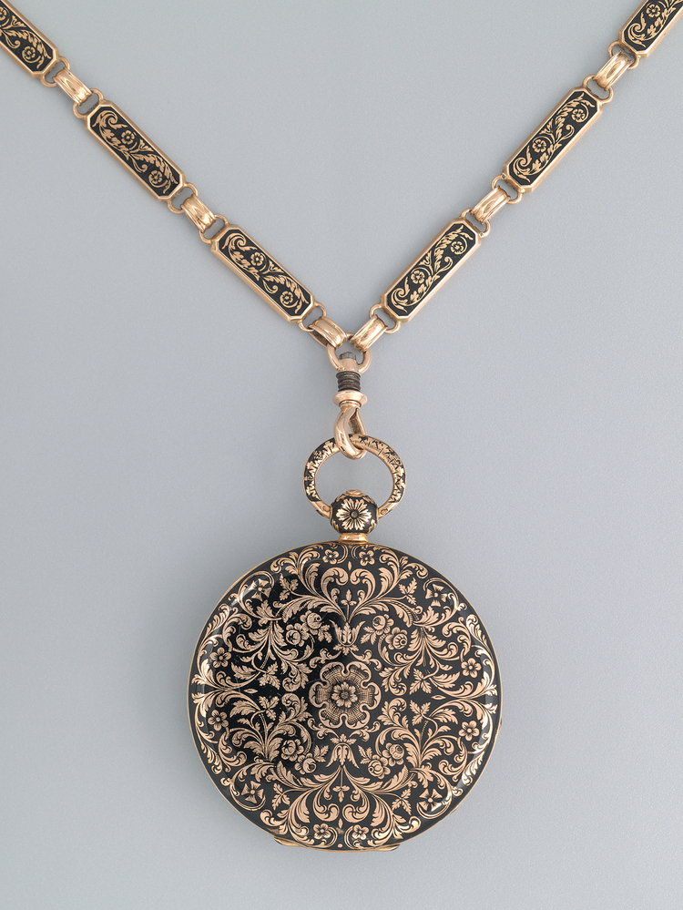 - Ultraplat horloge met ‘digitale’ aanduiding aan ketting, 1850 - 1870