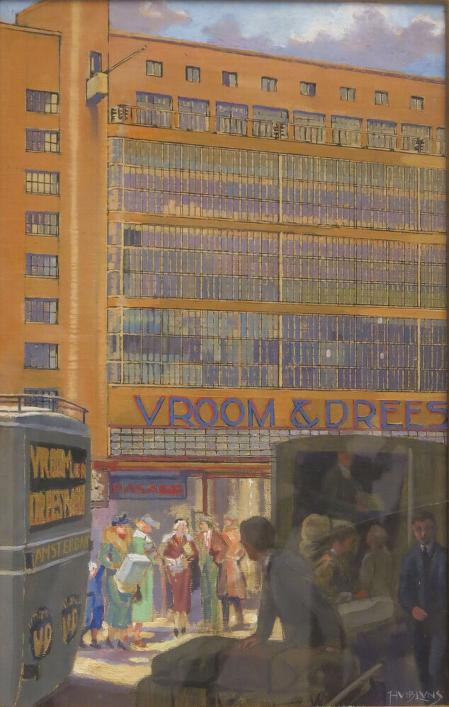In 1937 gaf V&D een speciale kalender uit, ter gelegenheid van het vijftigjarig bestaan van de NV Amsterdamsche manufacturenhandel Vroom en Dreesmann. V&D was in 1887 te Amsterdam opgericht door de uit Veendam afkomstige Willem Vroom (1850-1925) en zijn zwager, de Duitse emigrant Anton Dreesmann (1854-1934). De kalender bestaat uit achttien platen, vervaardigd door kunstenaar Huib Luns, die samen op chronologische wijze de geschiedenis van de wereldhandel vertellen. De eerste plaat toont de tijd van jagers en verzamelaars, toen handel bestond in de vorm van ruil van levensbenodigdheden. De kalender eindigt met een plaat van een modern warenhuis van V&D, met deftige winkelaars en moderne leverancierswagens op de voorgrond. Op 31 december 2015 werd V&D failliet verklaard. ( Sarah Remmerts de Vries)