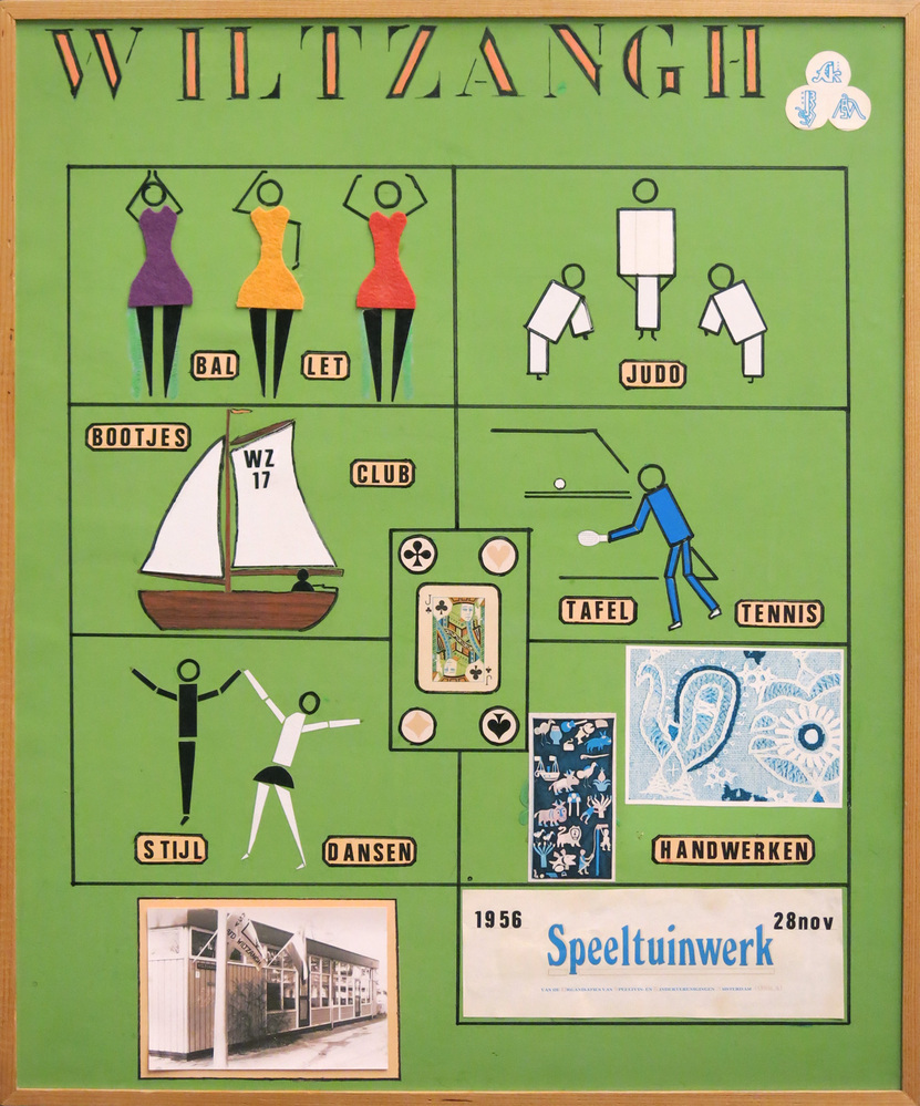 Op de grond stonden dozen met archieven en fotoalbums te wachten op het Stadsarchief. In de albums verkleurde foto’s uit de jaren zeventig van een clubhuis vol buurtbewoners met aan de muur een vlag waarop het embleem van de vereniging is geborduurd. In een doos ligt keurig opgevouwen een stapel vlaggen. Op de bar zie ik een foto hangen van Uilke Jans Klaren die omstreeks 1900 ijverde voor de oprichting van speeltuinen. In het kantoortje van het bestuur hangt een mooi tegeltableau uit 1942, ter herinnering aan het 25-jarig bestaan van het Amsterdams Speeltuin Verbond. Op het tableau, gemaakt door Goedewaagen Gouda, staan spelende kinderen, twee sportende volwassenen en de namen van alle Amsterdamse speeltuinverenigingen die indertijd deel uitmaakten van het ASV.