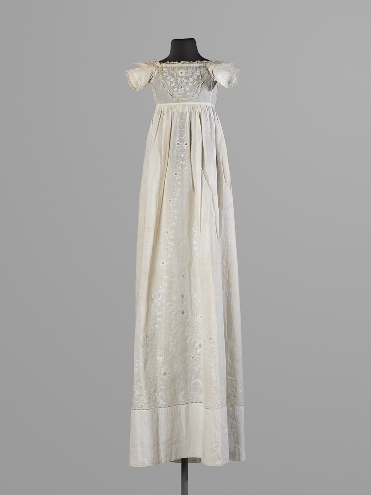 Een batisten doopjurk met toebehoren (doopdwaal en doopmutsje) uit het bezit van Theodorus Nicolaas “Dirk” de Neff, gedoopt 24 januari 1794. De Neff was wijnkoper van beroep en woonde aan de Herengracht 427. De doopjurk en toebehoren zijn gedragen door de kinderen uit zijn tweede huwelijk, met Maria Lucia Schuman. Op 12 juni 1820 gaven ze elkaar het jawoord. Ook de nazaten van hun kinderen hebben de witte doopkledij nog tot ver in de twintigste eeuw gedragen. Het zeldzaam mooie borduurwerk maakt het setje tot een bijzonder voorbeeld van negentiende-eeuwse doopkleding. ( Sarah Remmerts de Vries)