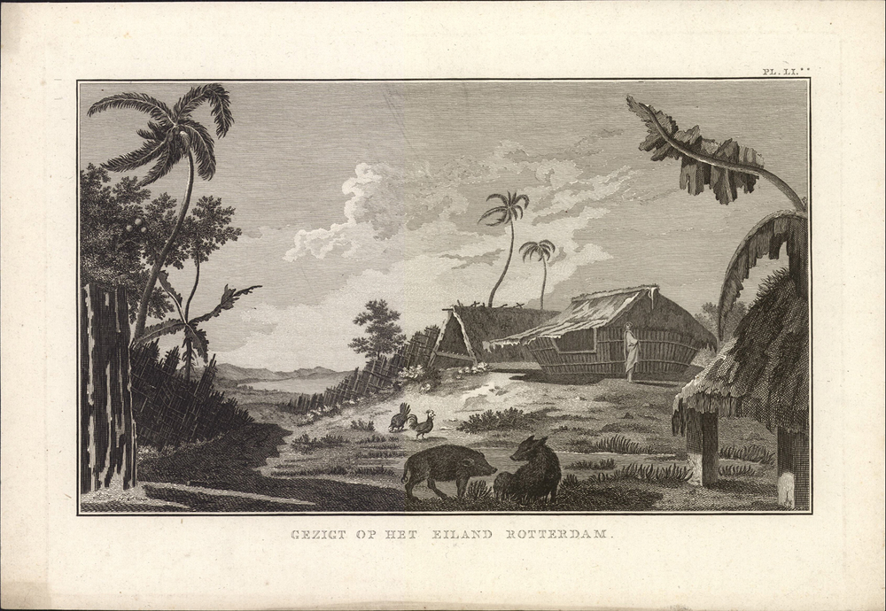 Onderdeel van een platen atlas (totaal 134 stuks) behorend bij de dertien delige uitgave "Reize rondom de Waereld" Nederlandse vertaling/uitgave van de reizen van James Cook, 1809.