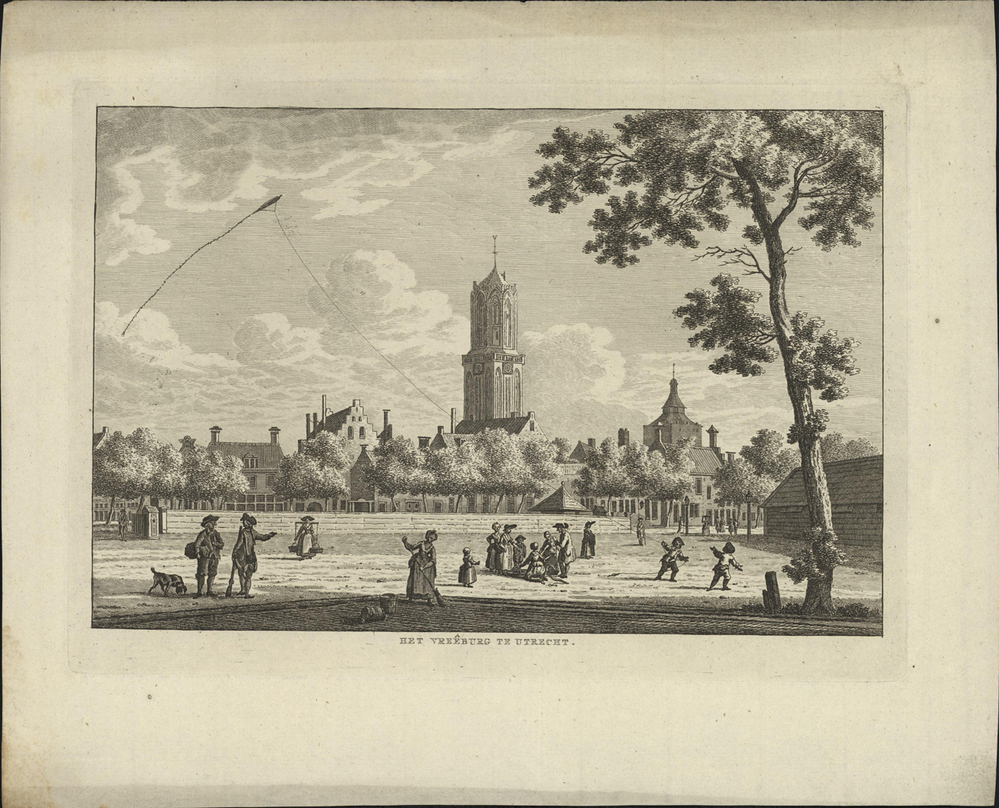 - opschrift midden onder in de marge: HET VREÊBURG TE UTRECHT.