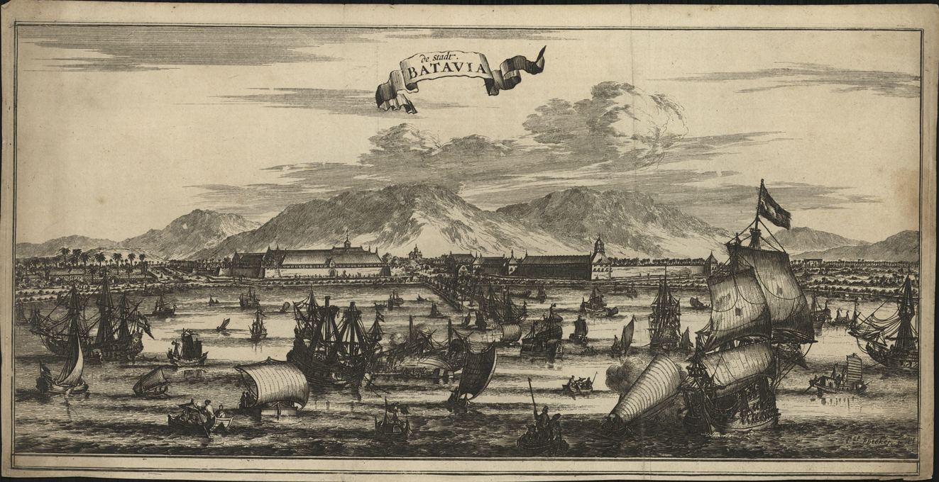 - titel midden boven in de afbeelding in de banner: de stadt BATAVIA.