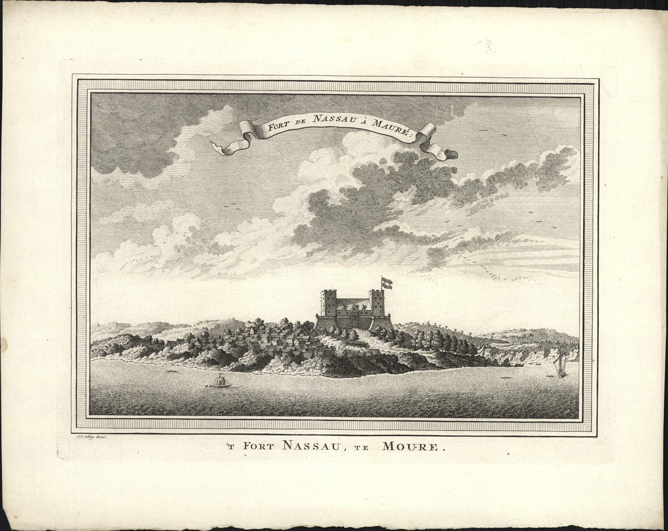 opschrift midden onder in marge: 'T FORT NASSAU, TE MOURE.