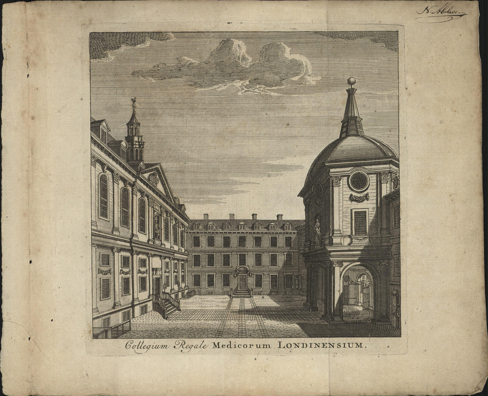 - opschrift midden onder afbeelding: Collegium Regale Medicorum LONDINENSIUM.