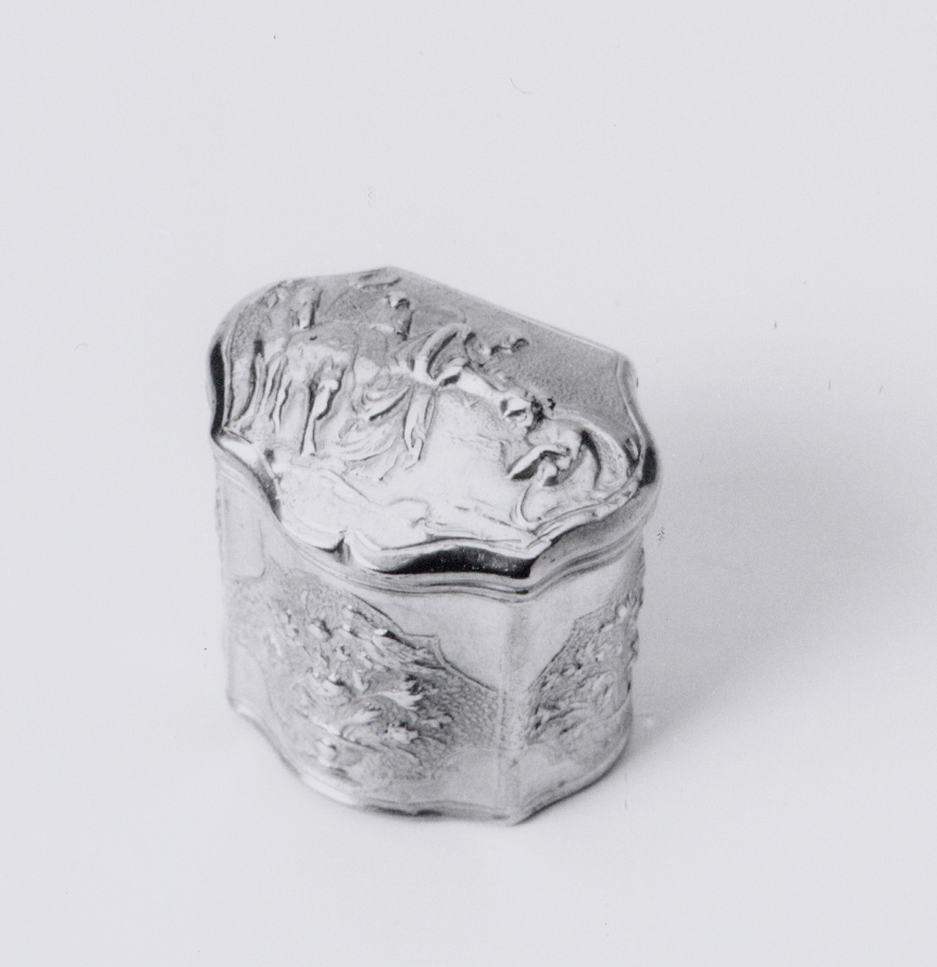 De meeste achttiende-eeuwse Amsterdamse loddereindoosjes in de verzameling van het Amsterdams Historisch Museum zijn cartouchevormig. Ze vertegenwoordigen het algemeen gangbare type dat gedurende de gehele tweede helft van de achttiende eeuw door een groot aantal zilversmeden is geproduceerd. Stichtende decoraties met personificaties van deugden of met bijbelse voorstellingen, zoals op dit doosje, komen veelvuldig voor. Zie over dit type loddereindoosje: Wttewaall 1994~2, p. 74-76. Zie het commentaar bij cat.nr. KA 3913. ( Bert Vreeken)