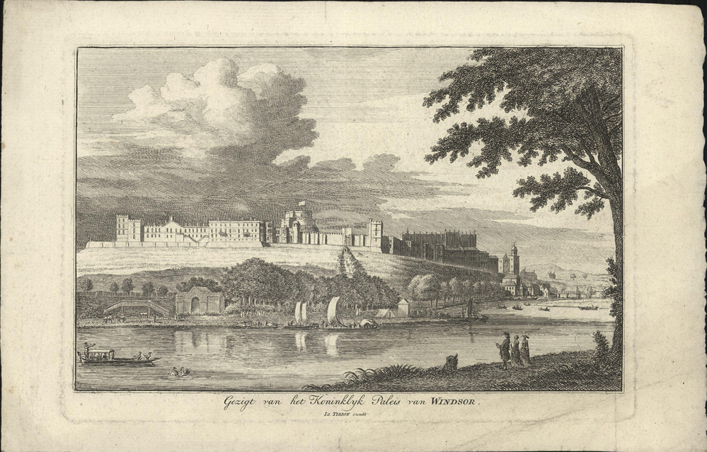 - opschrift midden onder afbeelding: Gezigt van het Koninklyk Paleis van WINSOR.