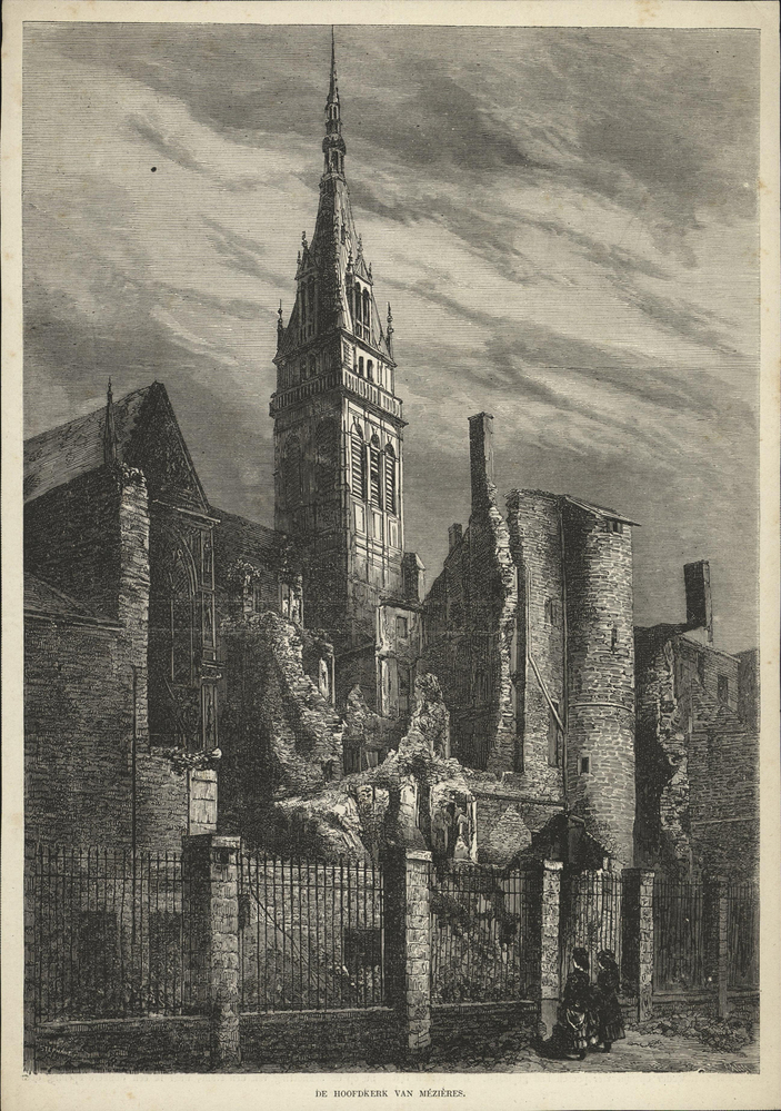 - opschrift midden onder afbeelding: DE HOOFDKERK VAN MÉZIÈRES.