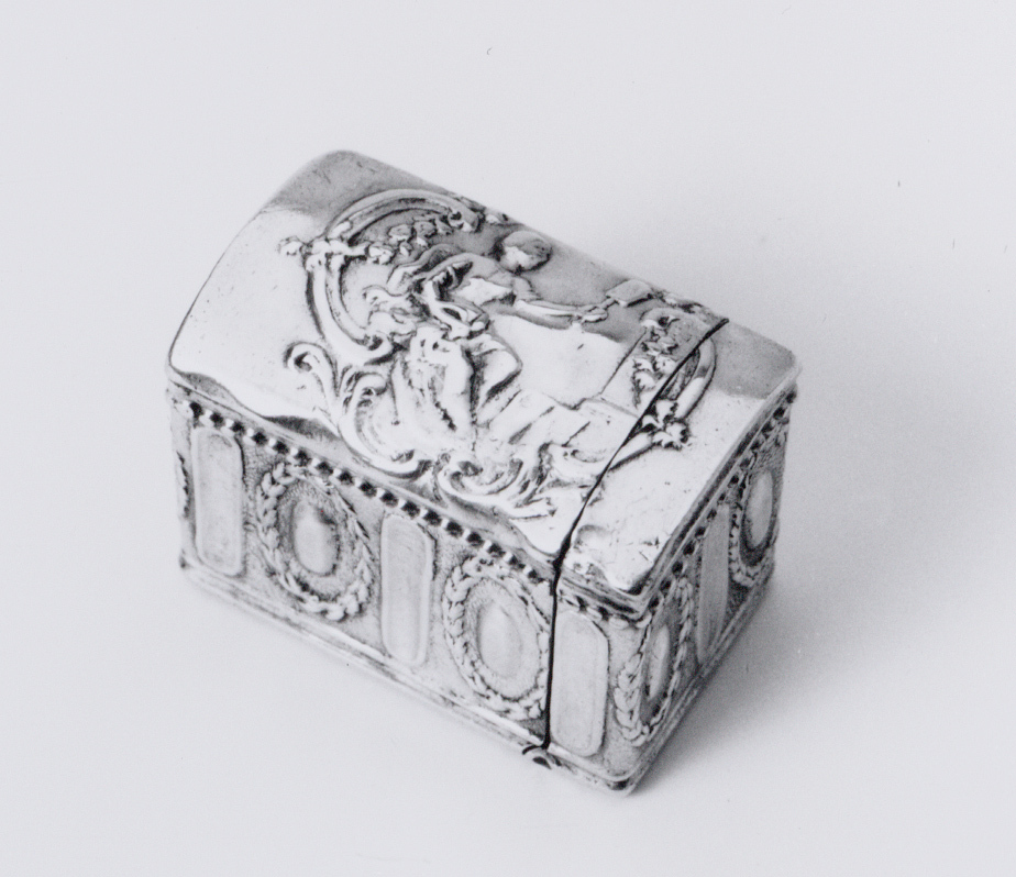 Het loddereindoosje is gedateerd op grond van een verwant exemplaar door Cornelis van Hoek uit 1807 (cat.nr. KA 3782). Zie voor een doosje van Van Hoek met identieke stampwerkdecors cat.nr. KA 3921. Zie over dit type loddereindoosje: Wttewaall 1994~2, p. 76-77. Zie het commentaar bij cat.nr. KA 3913. ( Bert Vreeken)