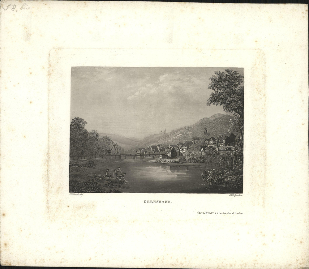- opschrift marge: C. Obach del. / J. J. Sperli sc. / Chez J. Velten à Carlsruhe et Baden