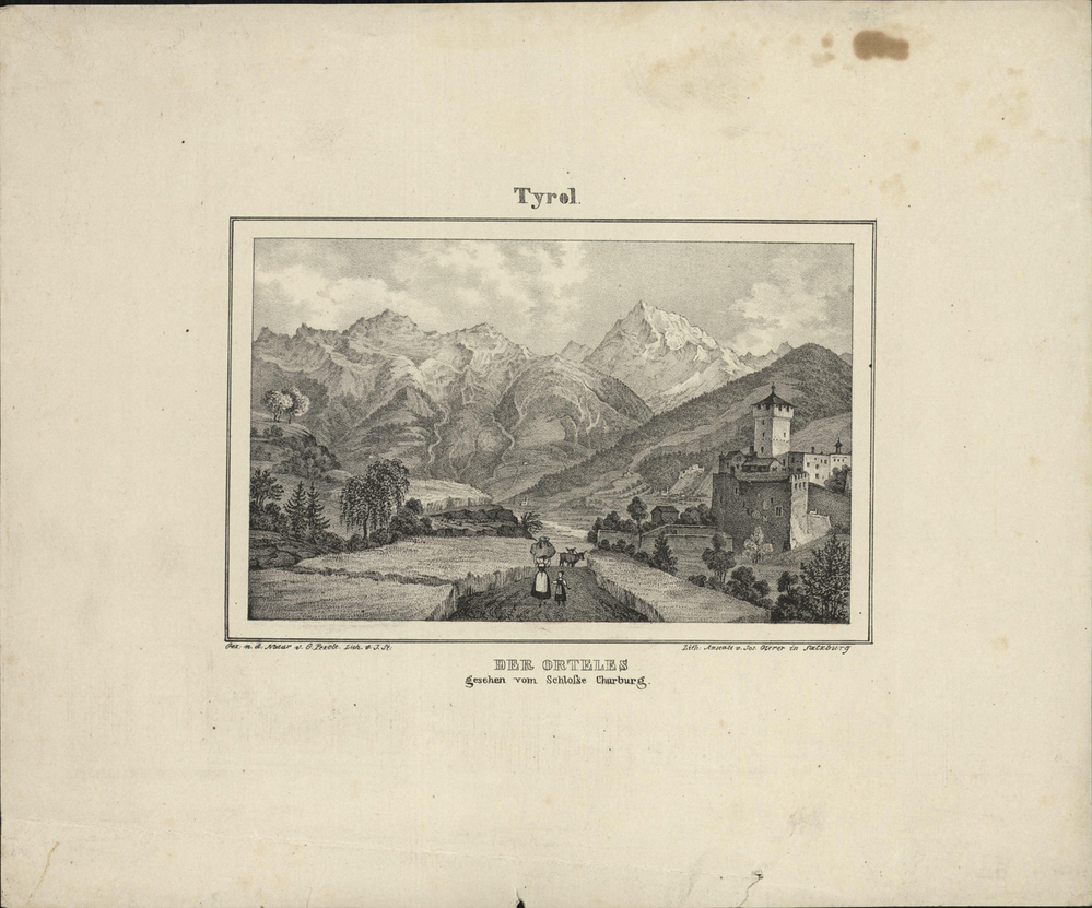 - opschrift marge onder afbeelding: Gez. n. d. Natur v. G. Pezolt.Lith. v. J. St: / Lith: Anstalt v. Jos. O[b]erer in Salzburg