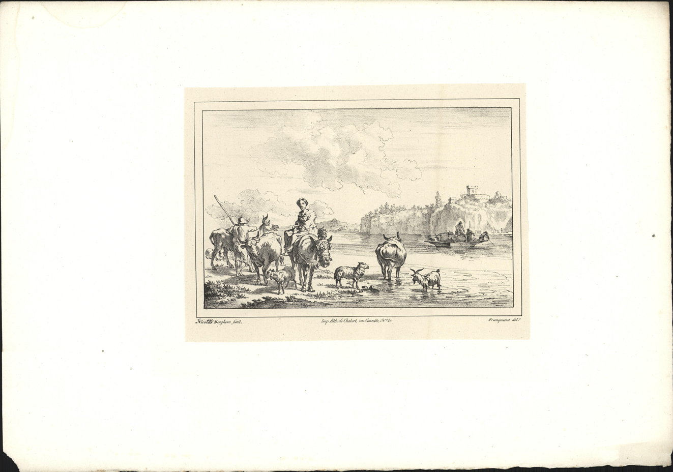 opschrift links onder in marge: Nicolas Berghem fecit.