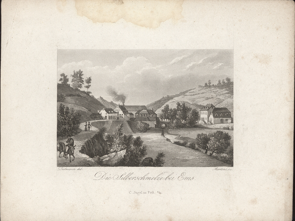 titel onder afbeelding: Die Silberschmelzebei Ems.