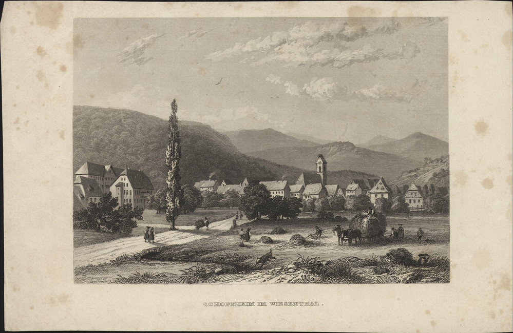 - opschrift midden onder afbeelding: SCHOPFHEIM IM WIESENTHAL.