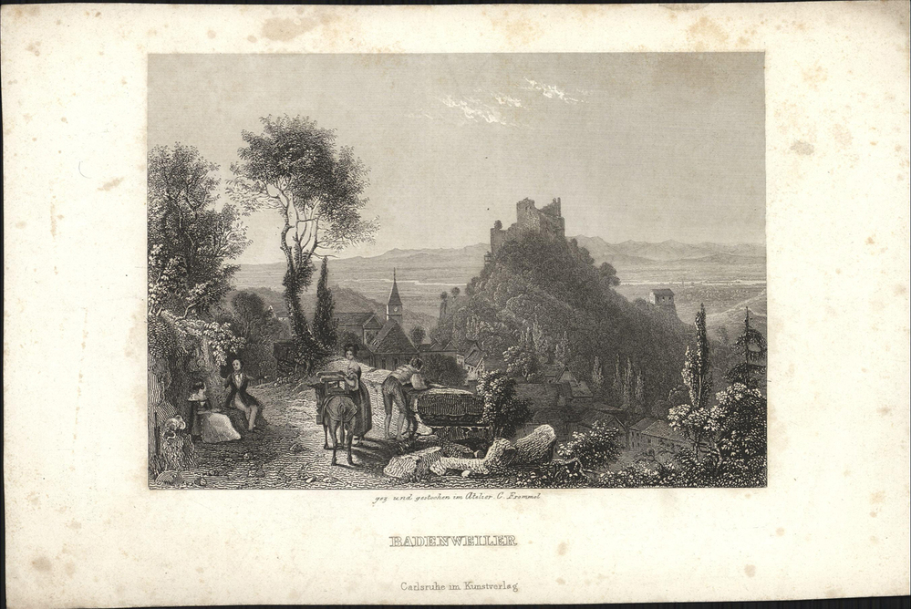 opschrift midden onder in marge: Carlsruhe durcht Kunstverlag